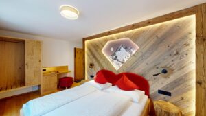 Genießen Sie erholsame Tage in unserem liebevoll eingerichteten Doppelzimmer „Johannes II“, das mit warmem Holzambiente und modernem Komfort überzeugt. Das großzügige Schlafzimmer lädt mit einem gemütlichen Doppelbett, hochwertigen Stoffen und stilvollem Interieur zum Entspannen ein.